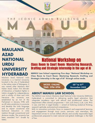 National Workshop on “Class Room to Court Room: Mastering Research, Drafting and Strategic Internship in the Age of AI”