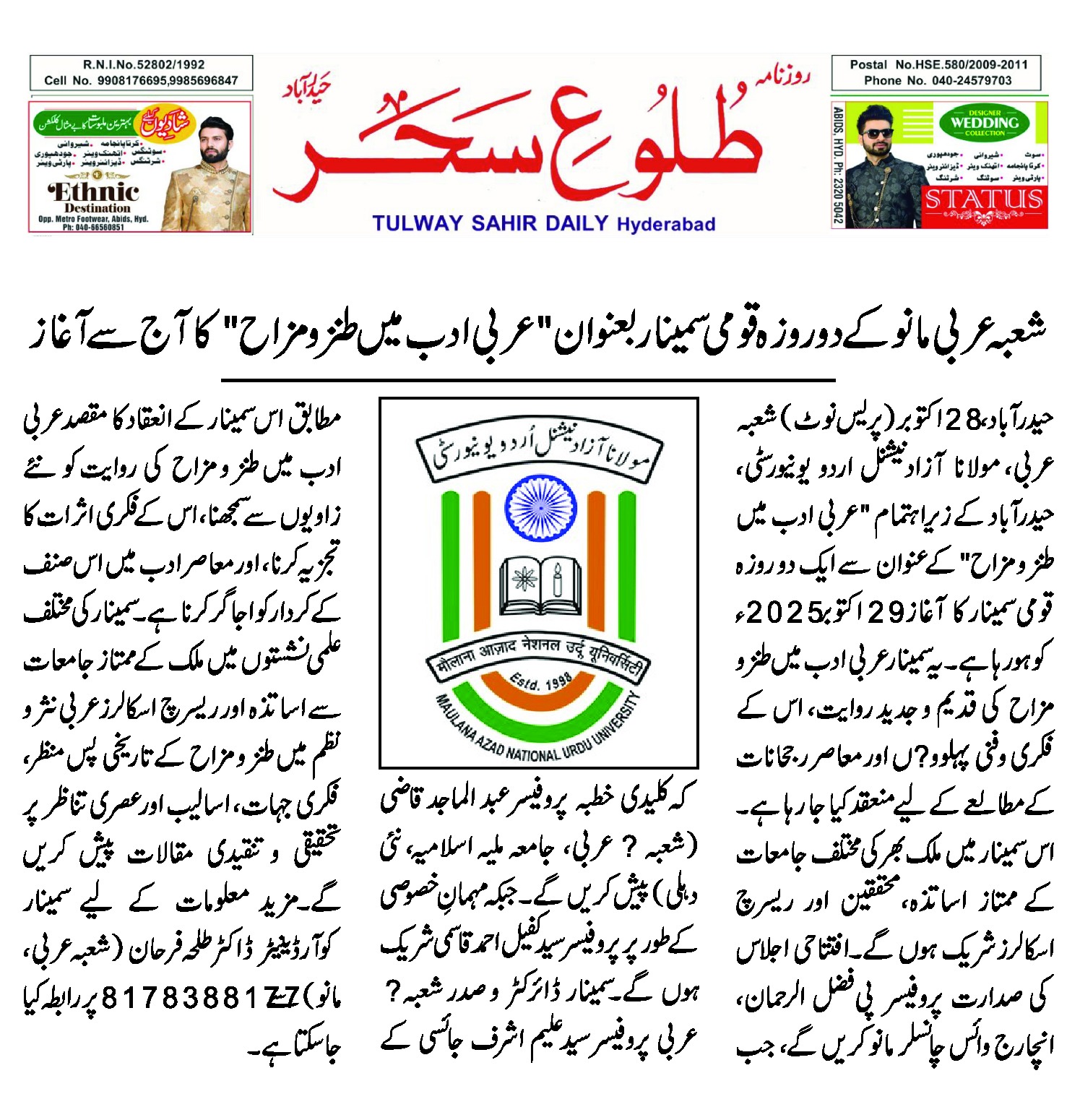 News Clippings of Arabic Seminar, Dhanak Bazar.