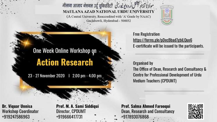 In collaboration with Dean, Research & Consultancy, MANUU, CPDUMT is going to organize One Week Online Workshop on Action Research. The Urdu Medium Teachers and Research Scholars will participate in the workshop.