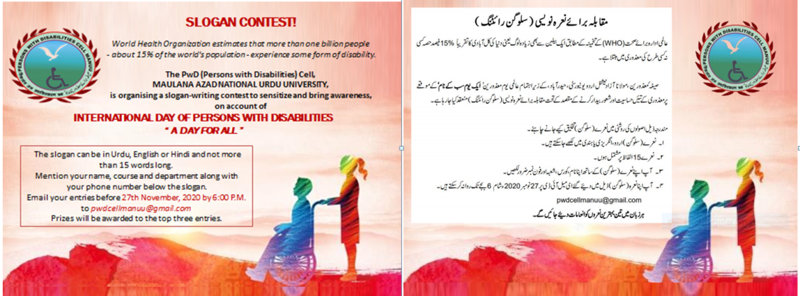 Slogan competition in connection with international day of persons with Disability to be celebrated at MANUU on 3rd Dec 2020