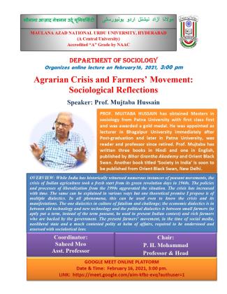 Agrarian Crisis and Farmers Movement: Sociological Reflections