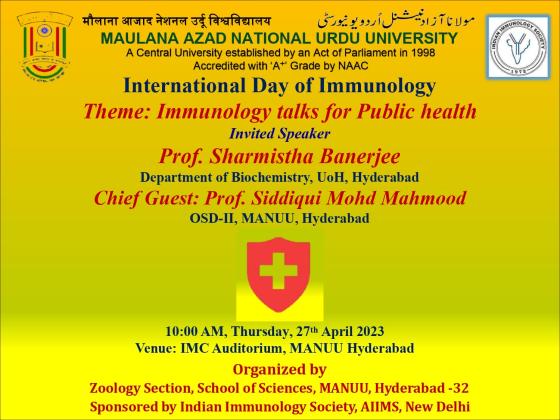 Zoology Section, School of Sciences, MANUU, Hyderabad -32 Sponsored by Indian Immunology Society, AIIMS, New Delhi
