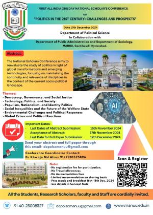 First All India One Day National Scholar's Conference on "Politics in the 21st Century: Challenges and Prospects"