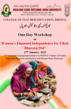 Workshop on "Women’s Financial Independence for Viksit Bharat@2047" 27th January, 2025. “A Community Engagement Initiative by MANUU College of Teacher Education-Bhopal in collaboration with Kurana Gram Panchayat”