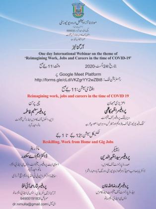 One day International Webinar on the theme of ‘Reimagining Work, Jobs and Careers in the Time of COVID 19’