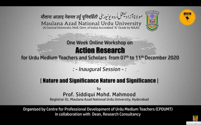 Organised a week long programme on Action Research from 7th to 11th December 2020 online from the Office of the Dean Research and Consultancy in collaboration with CPDUMT, MANUU. The workshop was well attended by large number of research scholars.
