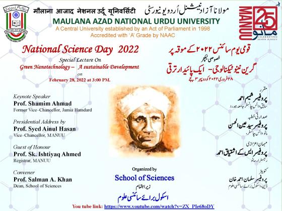 National Science Day 2022 Special Lecture On Green Nanotechnology – A sustainable Development