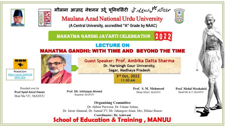 Mahatma Gandhi: With Time & Beyond the Time | Gandhi Jayanti Celebration-2022 | SE&T | MANUU