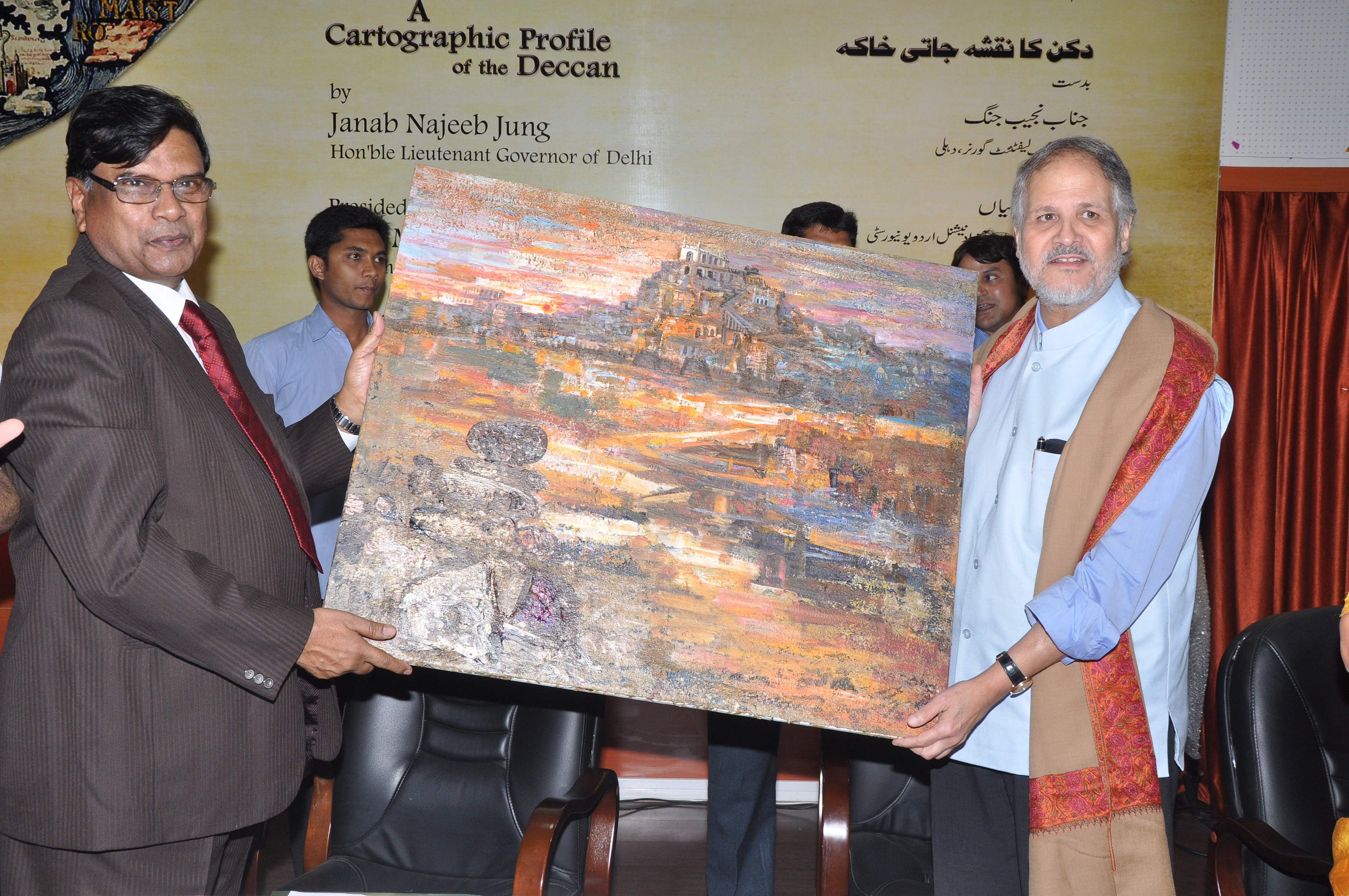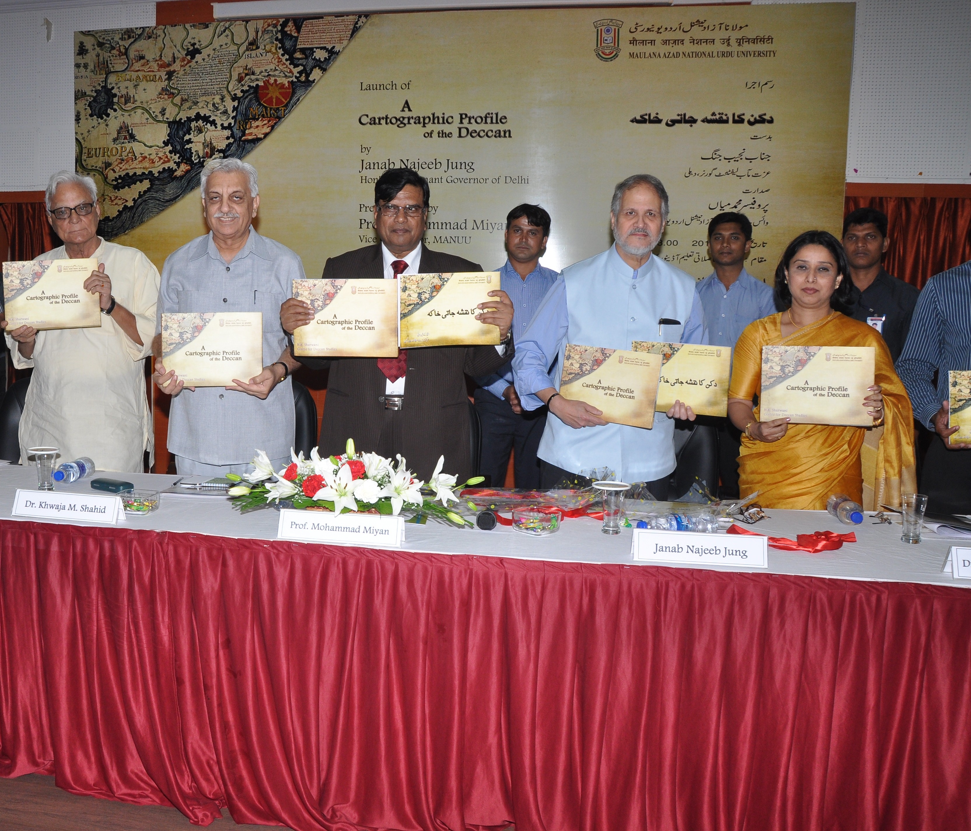 The Centre completed a major research study titled A Cartographic Profile of the Deccan which has put together 135 maps and nautical charts produced by map-makers, hydrographers and foreign travellers some as old as 900 years and some as young as only a 100 years in 10 different languages - Portuguese, Dutch, French, English, German, Italian, Latin, Catalan, Chinese and Arabic. Janab Najeeb Jung, Lt. Governor of Delhi released the book in English and Urdu versions on 20th September 2013 at Hyderabad. The book gains significance and has generated lot of interest since there is no historical atlas of the Deccan till date.