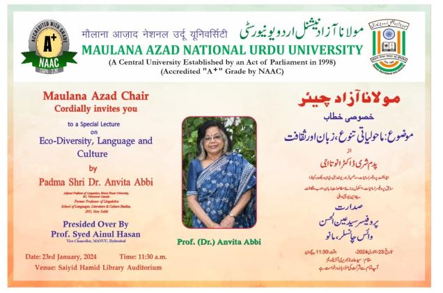 Maulana Azad Chair Cordially invites you to a Special Lecture on Eco-Diversity, Language and Culture by Padma Shri Dr. Anvita Abbi