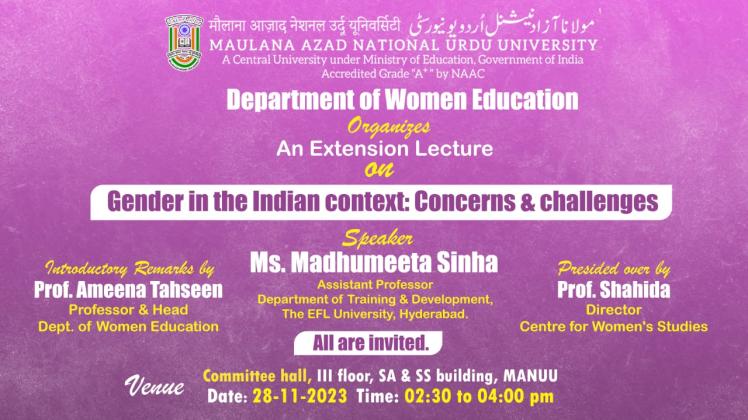 An Extension Lecture on Gender in the Indian Context Concerns & Challenges