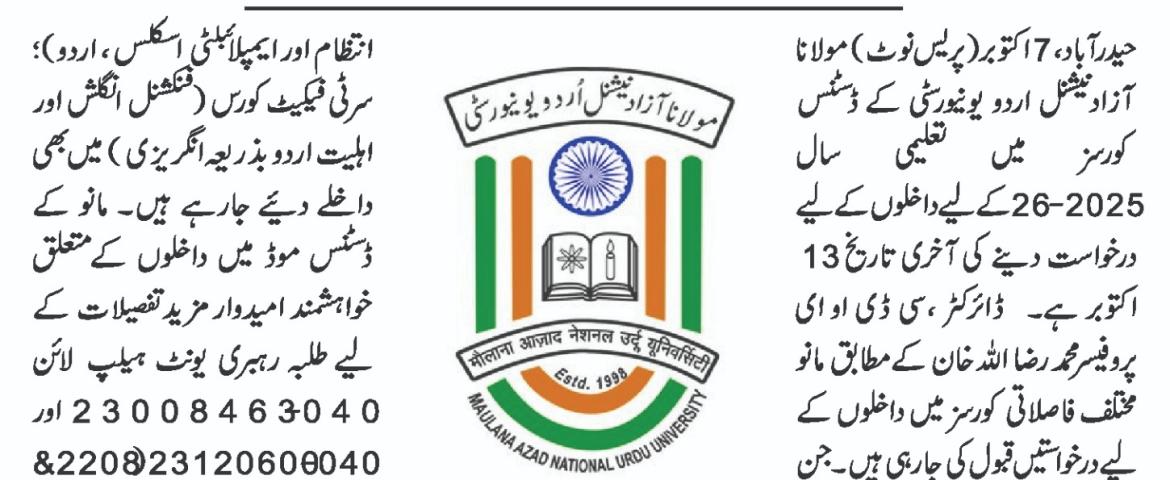 MANUU Portals for MoE/UGC