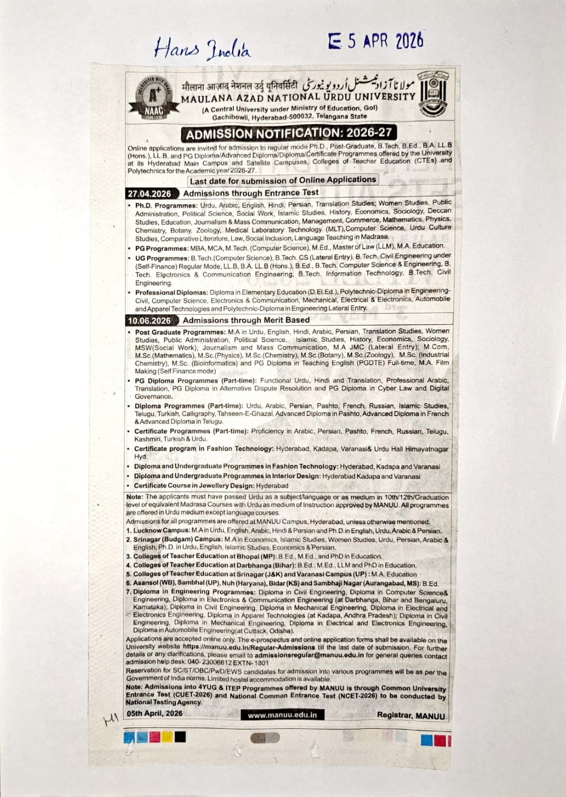 Principals (Satellite Campuses/ITIs/Model Schools)