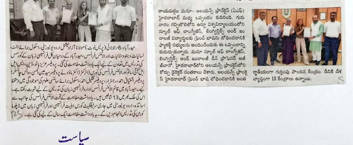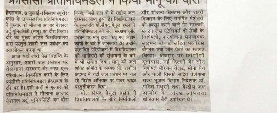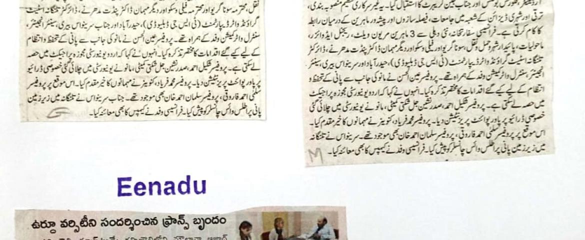 News Clippings of French Delegation, MoU with Alliance Francaise, B.Ed. (Distance) Admissions, Admissions in M.Tech. etc