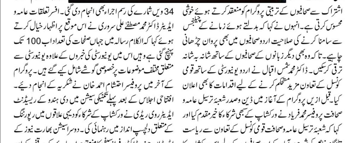 News Clippings MCJ Workshop, Sciences, SRC Programme