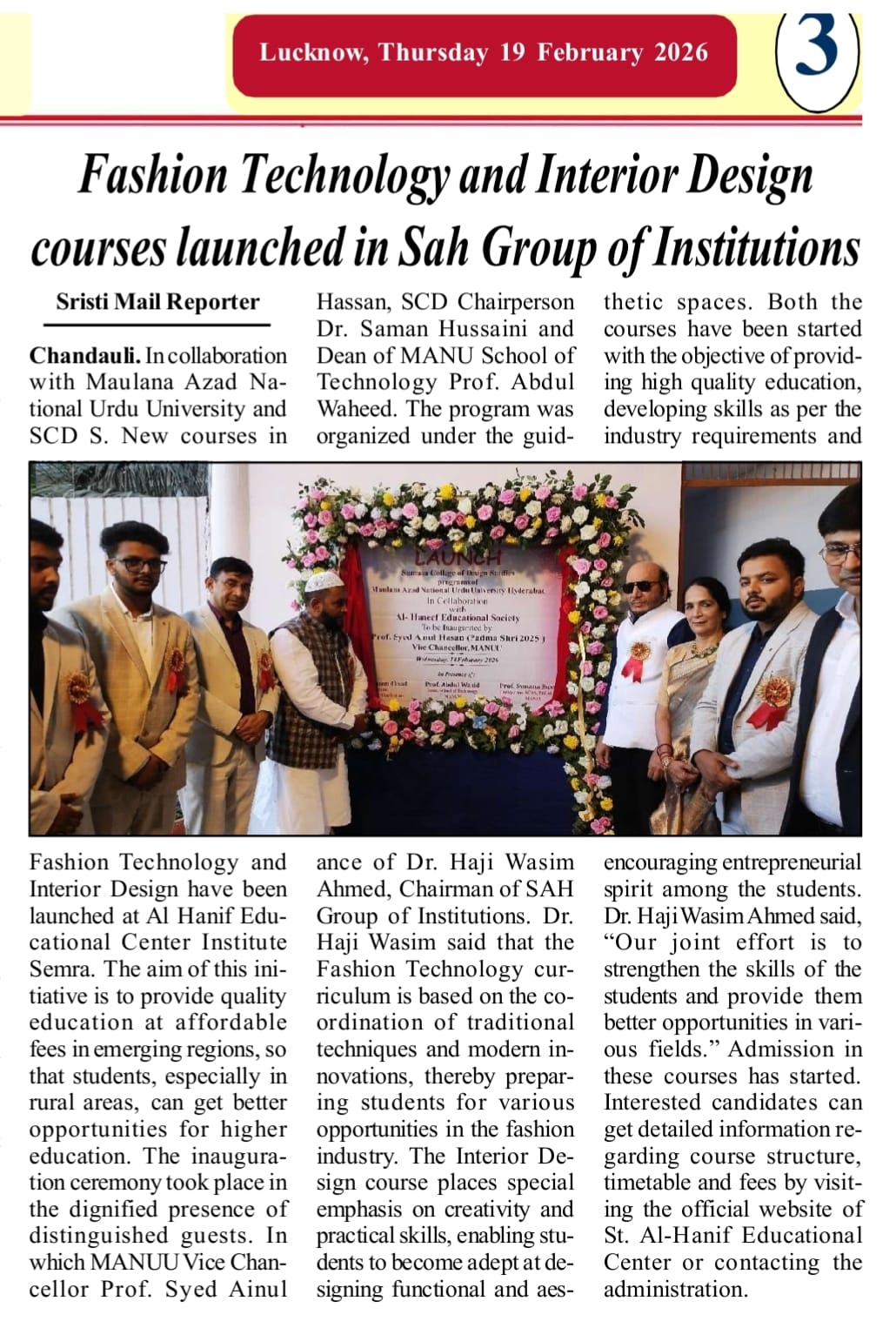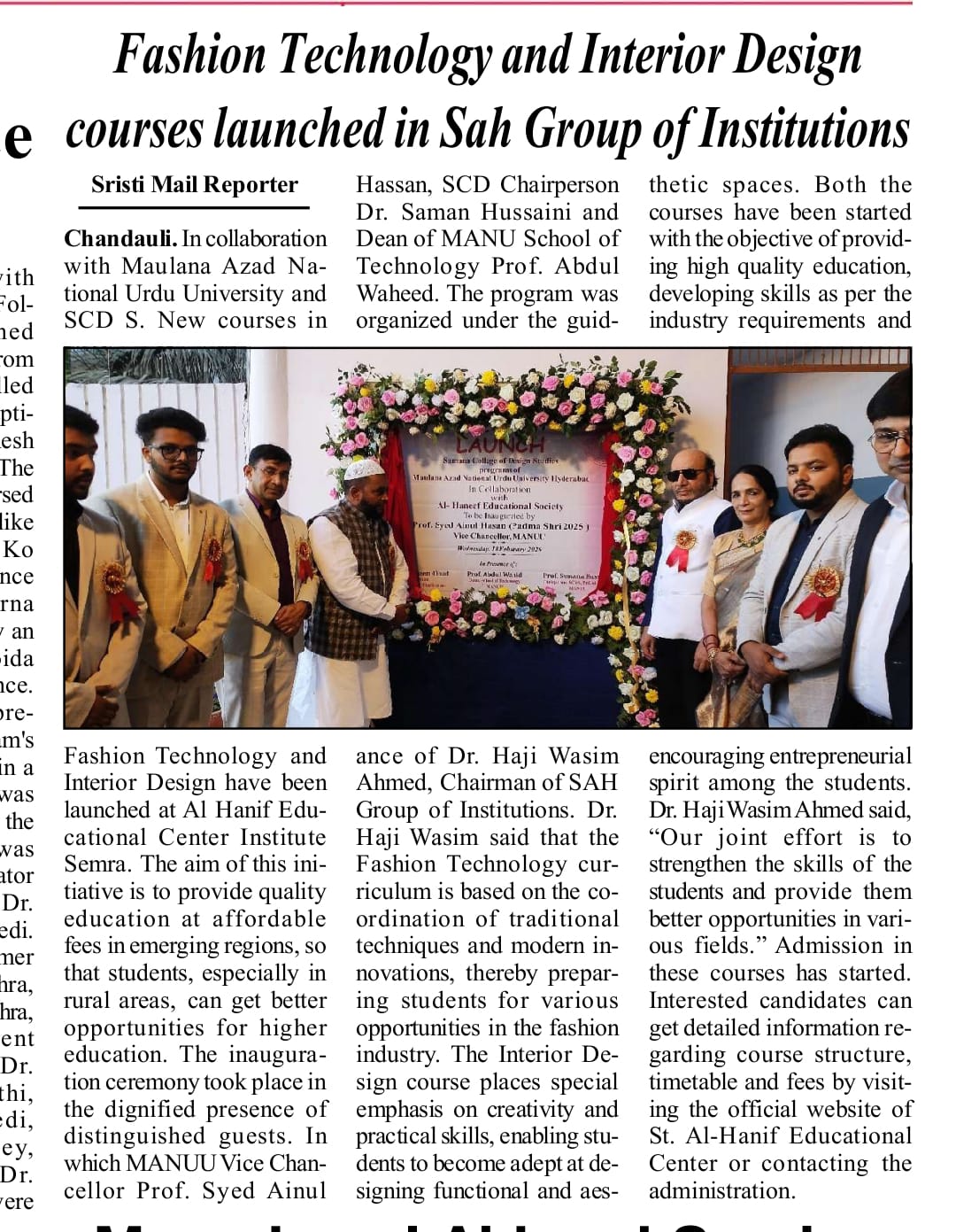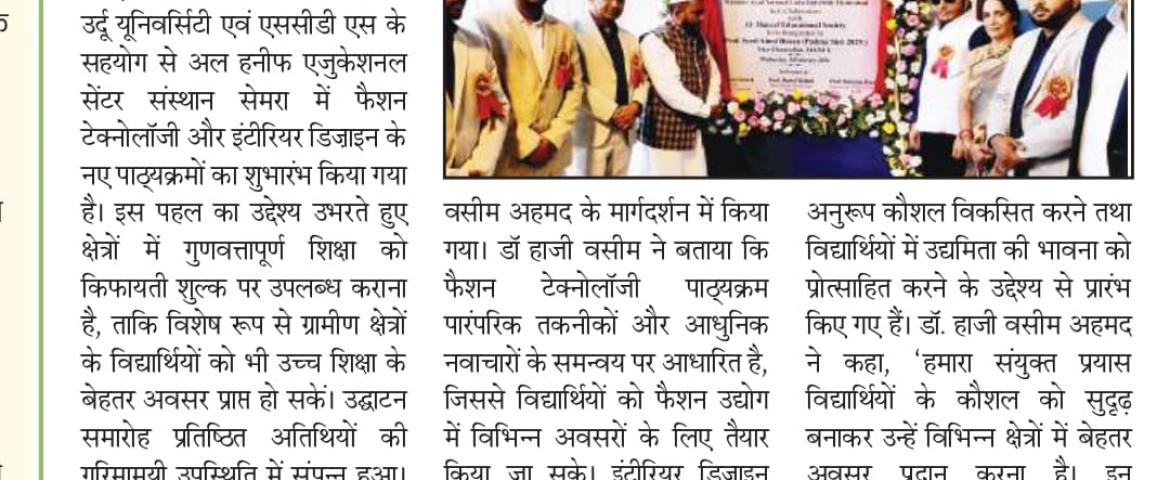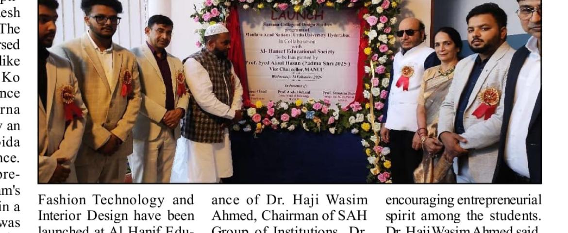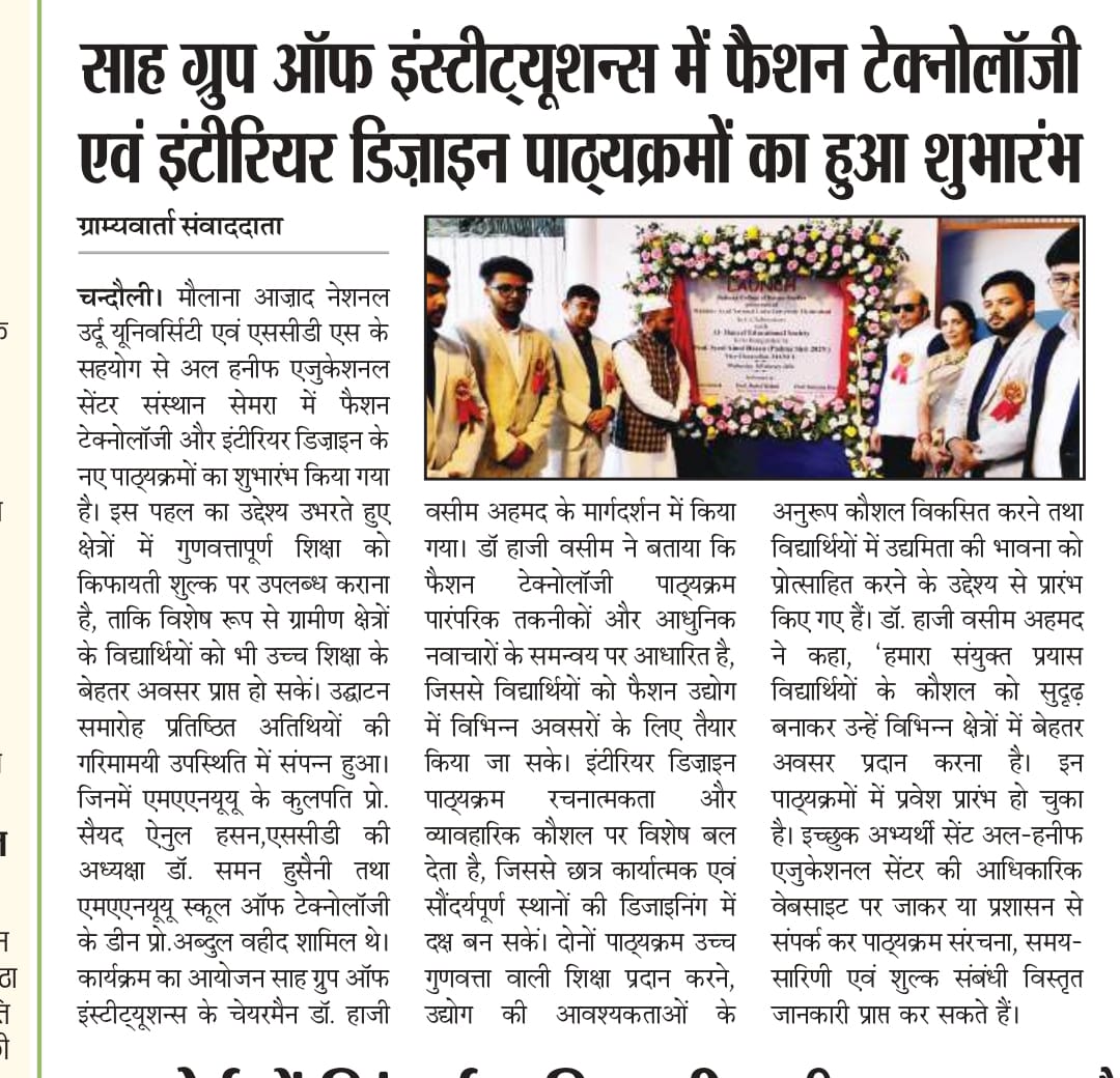 Fashion Technology and Interior Design Courses Launched at Sah Group of Institutions in Collaboration with Maulana Azad National Urdu University (MANUU)