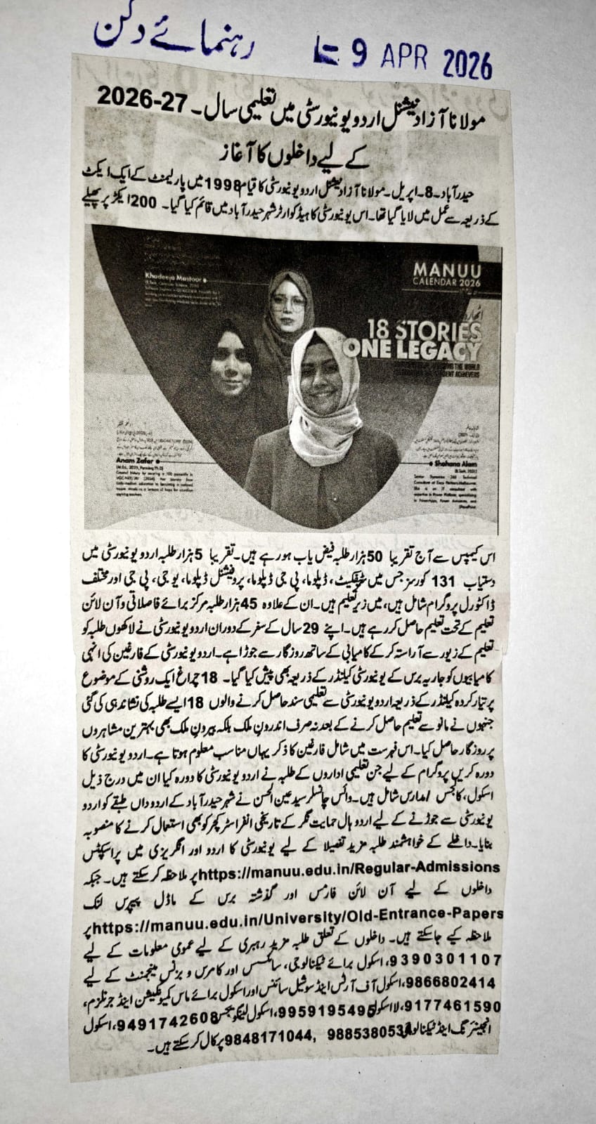 News Clippings of Admissions article