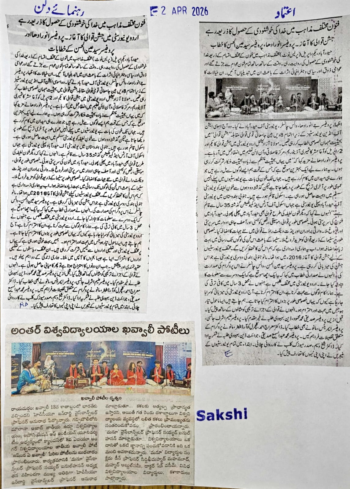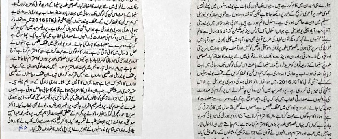 Press Clippings of Urdu & Jashn-e-Qawwali Programme