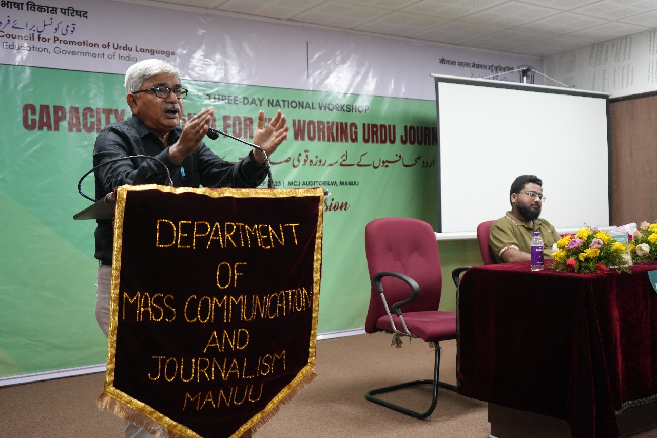 The second day of the three-day national workshop “Capacity Building for Working Urdu Journalists” at Maulana Azad National Urdu University (MANUU) witnessed thought-provoking technical sessions that explored diverse dimensions of journalism in the modern era. The event is being organized by the National Council for Promotion of Urdu Language (NCPUL), Ministry of Education, Government of India, in collaboration with the Department of Mass Communication and Journalism (MCJ), MANUU.