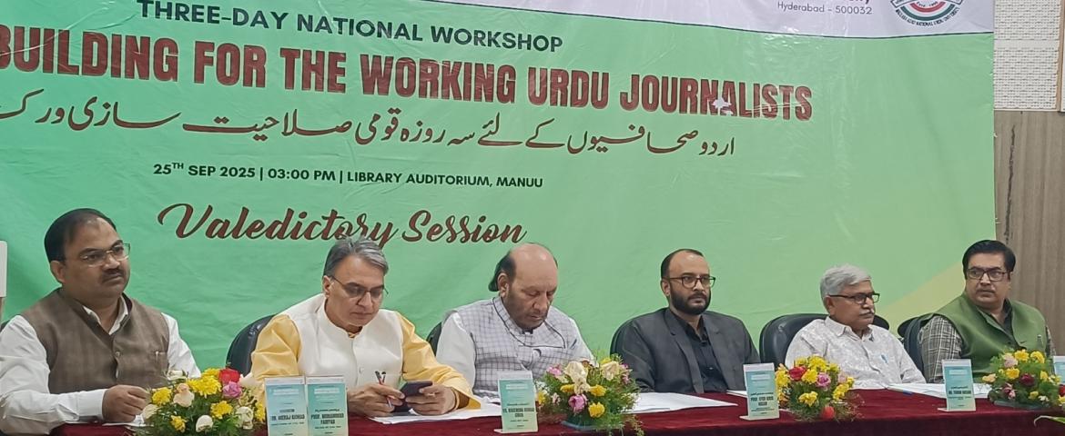 Three-day national workshop “Capacity Building for Working Urdu Journalists”, organized by the National Council for Promotion of Urdu Language (NCPUL), Ministry of Education, Government of India in collaboration with the Department of Mass Communication and Journalism, Maulana Azad National Urdu University (MANUU), concluded yesterday.