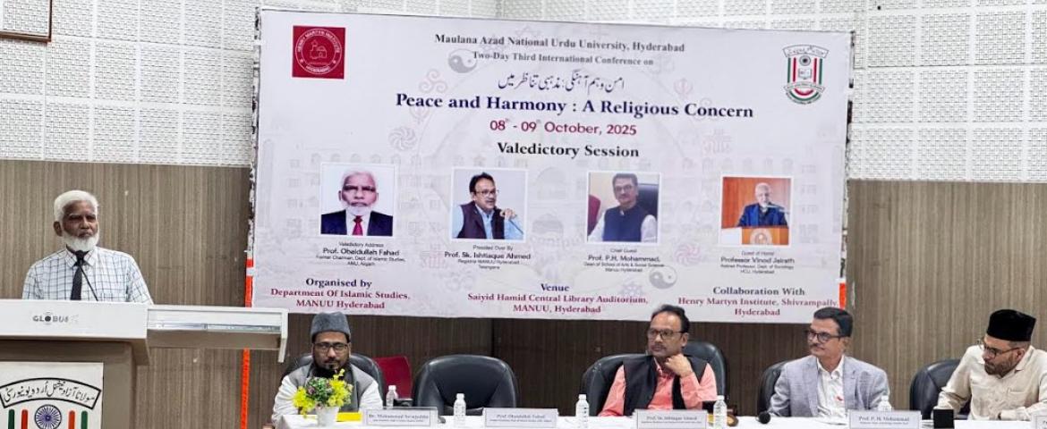 The Department of Islamic Studies, MANUU in collaboration with the Henry Martyn Institute, Hyderabad organized two days international conference “Peace and Harmony: A Religious Perspective" on October 08 & 09, 2025.