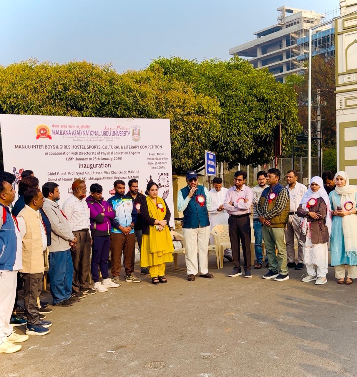 MANUU Inter-Hostel (Boys & Girls) Sports, Cultural and Literary Competitions- 2026 were inaugurated today at Maulana Azad National Urdu University (MANUU) campus with aim to promote physical fitness, cultural harmony, creativity, and literary excellence among students residing in various hostels of the university. These competitions will be held separately for boys and girls under Provost Boys and Girls Hostels.